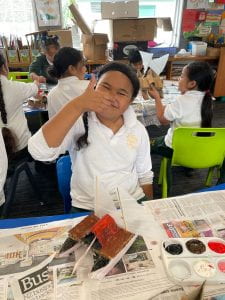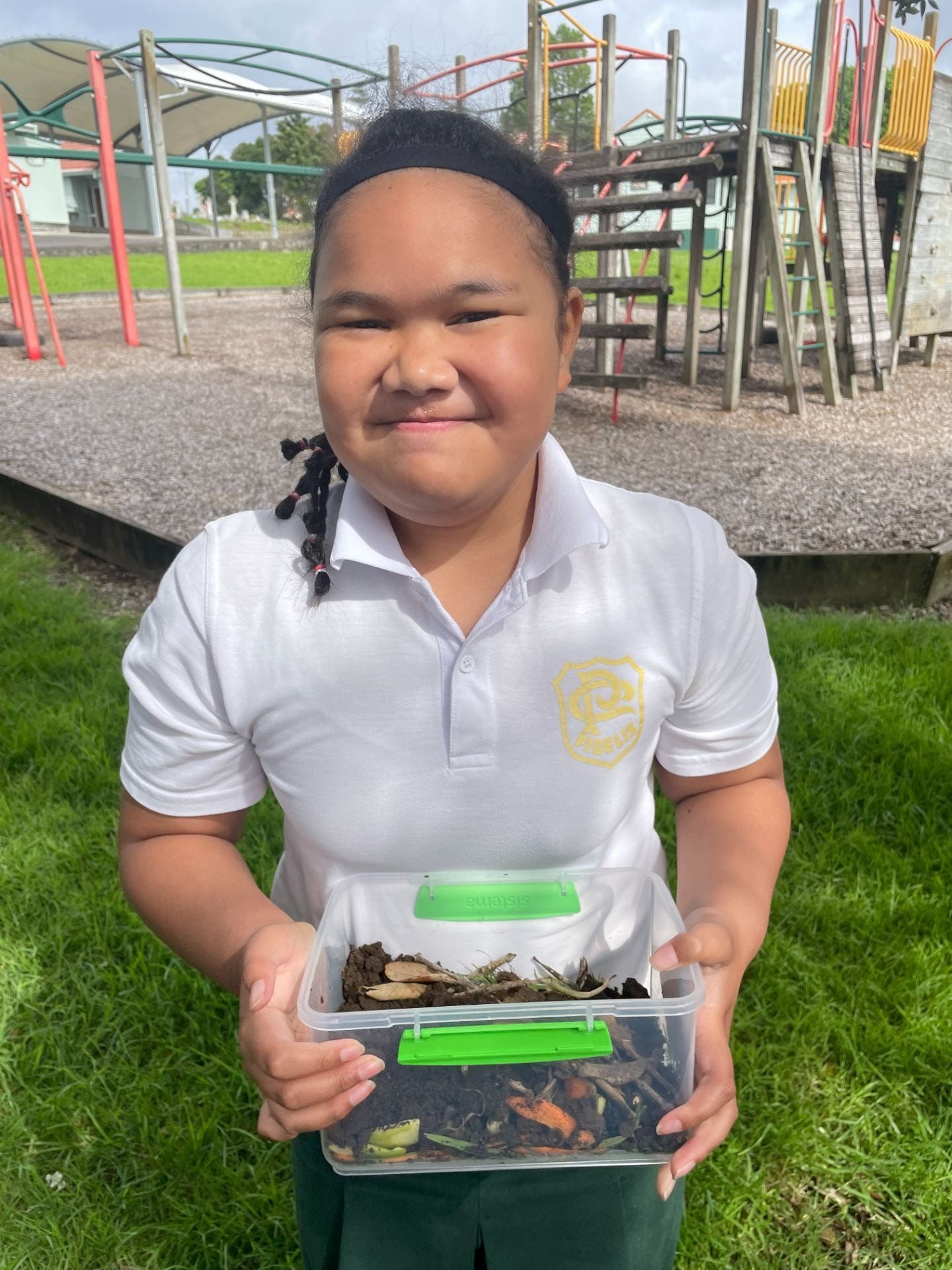 This week I had so much fun because I found earthworms!!! Some were tiny and some were big. I made a box with soil, leaves, apple skins and carrots for my earthworms to eat. They feel cold and lumpy and soft. They live under the grass, deep down. My whole class are now interested in learning about earthworms too.